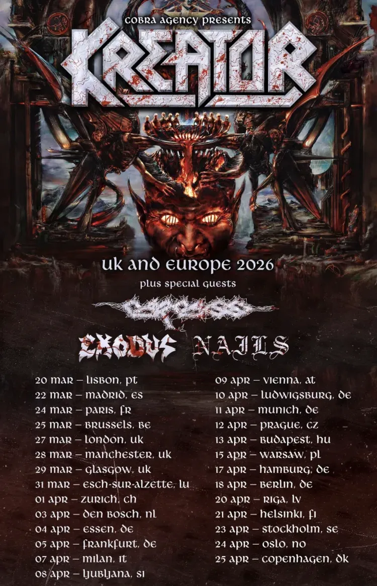 ⊙ Kreator + Carcass + Exodus + Nails - Dienstag, 31. März ab 17 Uhr, in der Rockhal Box, Esch-sur-Alzette ![]() |
