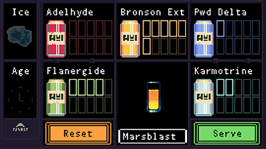 | Das Getränkemixen aus Fantasie-Zutaten ist nicht so schwer, aber Fehler sind schnell gemacht, denn auch Grösse, Eis, Ruhezeit oder Alkoholgehalt müssen beachtet werden. Die Schnapsnasen am Tresen ordern nämlich auch mal nur "was Süsses" oder "was Billiges". Interessant ist, dass der Cocktail die Handlung beeinflusst und das hängt nicht nur damit zusammen, ob der Gast strulli vom Barhocker kippt. Fehler wirken sich auch auf dem Gehaltzettel aus. |