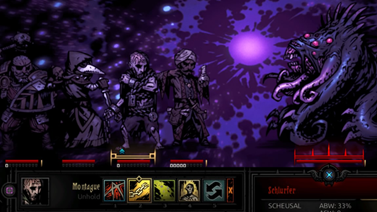 | Für ein durch Sammel-Finanzierung entstandenes Erstlingswerk ist Darkest Dungeon extrem toll gelungen. Die Kämpfe sind knackig, die Welt schön krank und der englische Sprecher Wayne June formuliert gekonnt altertümlich. Es ist einfach sehr motivierend die beste Vierergruppe zu finden, mit der es den Gegnern an den Kragen geht. Manche Zusammenstellungen, wie der "Hofstaat" oder "die üblichen Verdächtigen" erhalten sogar Boni als gelungenes Team. Playstation-Spieler können zudem Cross-Play und Cross-Save-Funktion nutzen. |