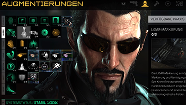 | Coolerweise ist sämtliche Biotechnik, die Jensen in Human Revolution bekommen konnte im Körper drin, nur zunächst untüchtig. Nach und nach lassen sich die Funktionen mit "Praxis-Kits" reaktivieren. Welche man dabei wählt sollte man der eigenen Spielweise anpassen, denn Mankind Divided lässt sich gediegen schleichend sowie raufend oder mit rauchendem Gewehr spielen. Es ist möglich, vollkommen friedvoll, ohne einen einzigen Gegner zu töten, ja sogar ohne je gesehen zu werden, das Spiel zu beenden. Neu ist die erhöhte Beweglichkeit, die es erlaubt auf Dächer oder in Lüftungsschächte zu hüpfen. Ein "Assassins-Creed"-Klettermax ist Jensen trotzdem noch nicht. |