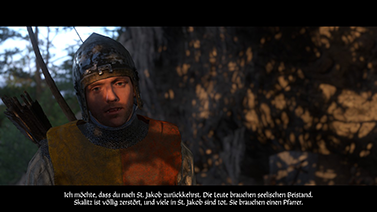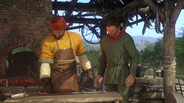 | 1403, vor dem Anbruch der Renaissance in Europa, gibt es einen Streit um den Thron Böhmens. Da der neue König Wenzel kaum Macht besitzt, wird ihm die Herrschaft von seinem Bruder Sigismund streitig gemacht. Dessen Heer plündert Städte und Dörfer. Auch Skalitz ist betroffen, in dem Heinrich, der Sohn des Dorfschmieds (Bild oben) lebt. Als Spieler übernimmt man den jungen Handwerker. Aus der Ich-Perspektive gesteuert nimmt man Heinrichs Schicksal in die Hand und hat dabei viel Auswahl. | ||||