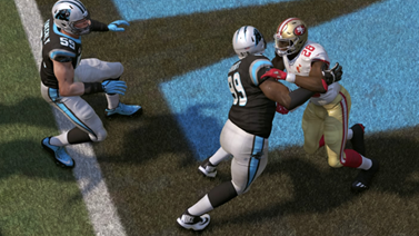 | Die eigenartigste Erfahrung ist die Karriere als Spieler zu erleben. Ob als unbekannter Rookie oder gestandener Star steht zur Auswahl, wobei insbesondere die taktische Position die Art dieses Erlebnisses prägt. Linebacker Luke Kuechly (Bild oben) sieht herausfordernden Defensiv-Trainingseinheiten entgegen und muss im Spiel einschätzen, ob er seine Aufgabe in der Deckung diszipliniert beachtet, auf schlecht geworfene Bälle lauert oder wild nach vorne attackiert. Aber auch Pausen auf der Bank gehören zum Profi-Alltag. |