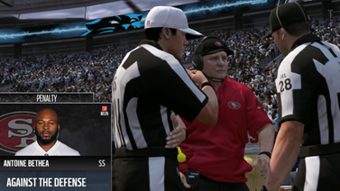 | Realistisch aufgepeppt wird das Spiel durch turbulente Entscheidungen der pfeifenden Zunft. Die Schiedsrichter werfen Flaggen für Fouls aufs Feld, diskutieren ab und zu untereinander sowie mit den Trainern und beziehen mit dem Mikrofon öffentlich Stellung. Entscheidungen können überprüft und Strafen von der begünstigten Mannschaft abgelehnt werden, falls sich kein Vorteil ergibt. | |||||