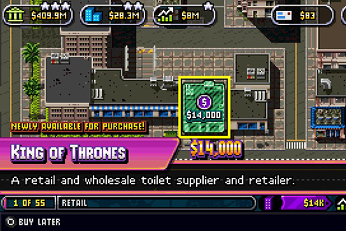 Arcade | Action | Simulation Einige Zeit am Strand mit Cocktails abchillen, während der eigene Laden den Bach runtergeht - das lässt den Firmenboss in diesem launigen Actionspiel wieder zur Tat schreiten. |