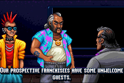 Um was für ein Spiel handelt es sich?Shakedown Hawaii ähnelt GTA 1 und 2 (1997 und 1999), sowie natürlich auch seinem direkten Vorgänger Retro City Rampage (2012). Stellenweise gibt es auch Passagen im Stil des Amiga-Spiels Dogs of War (1989). Hier wird also in der Vogelperspektive herumgelaufen und gefahren. Die offene Welt lässt sich frei erkunden und die abwechslungsreichen Missionen haben das Ziel, die eigene Firma wieder an die Spitze zu führen. Der Anteil Wirtschafts-Simulation hält sich jedoch in überschaubaren Grenzen.
