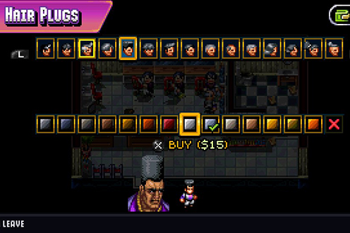 Neue Frise gefällig? Für gescheite "Shakedowns" unerlässlichDas Erscheinungsbild vom Boss kann beim Frisör, in Kleidergeschäften und Helloween-Shops (!) aufgestylet werden. Das gilt auch fürs Gangster-Outfit, mit dem man sich vermummen kann, um "Shakedowns" durchzuziehen. Bei den Erpressungsversuchen genügt es als Drohung manchmal, die Kunden böse anzugucken oder die Toilette zu verstopfen. Andernorts ist schon mal härteres Durchgreifen nötig. Ein üppiges und ungewöhnliches Waffenarsenal sammelt sich im Lauf des Spiels an. Gegner können auch durch Draufhüpfen oder Werfen (!) außer Gefecht gesetzt werden. Während "echte" Kontrahenten beherzt angreifen, verhalten sich normale Passanten angesichts von Aggression unvorhersehbar. Manche rennen schreiend davon, andere wollen sich prügeln. |