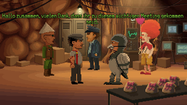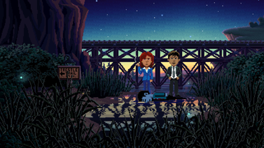 | Der deutsche Reisende Boris Schultz (den man in der Einleitung sogar steuern darf) kommt im Örtchen Thimbleweed Park auf mysteriöse Weise ums Leben. Die Aufklärung des mutmasslichen Mords übernehmen die Bundesagenten Angela Ray und Antonio Reyes, die sich gerade in den Nähe befinden. Die beiden stellen fest, dass sich im Ort bemerkenswerte Dinge zutragen. So verschwand vor kurzem auch der örtliche Unternehmer Chuck Edmund. Gehen hier gar paranormale Ereignisse vor sich? | ||||||||